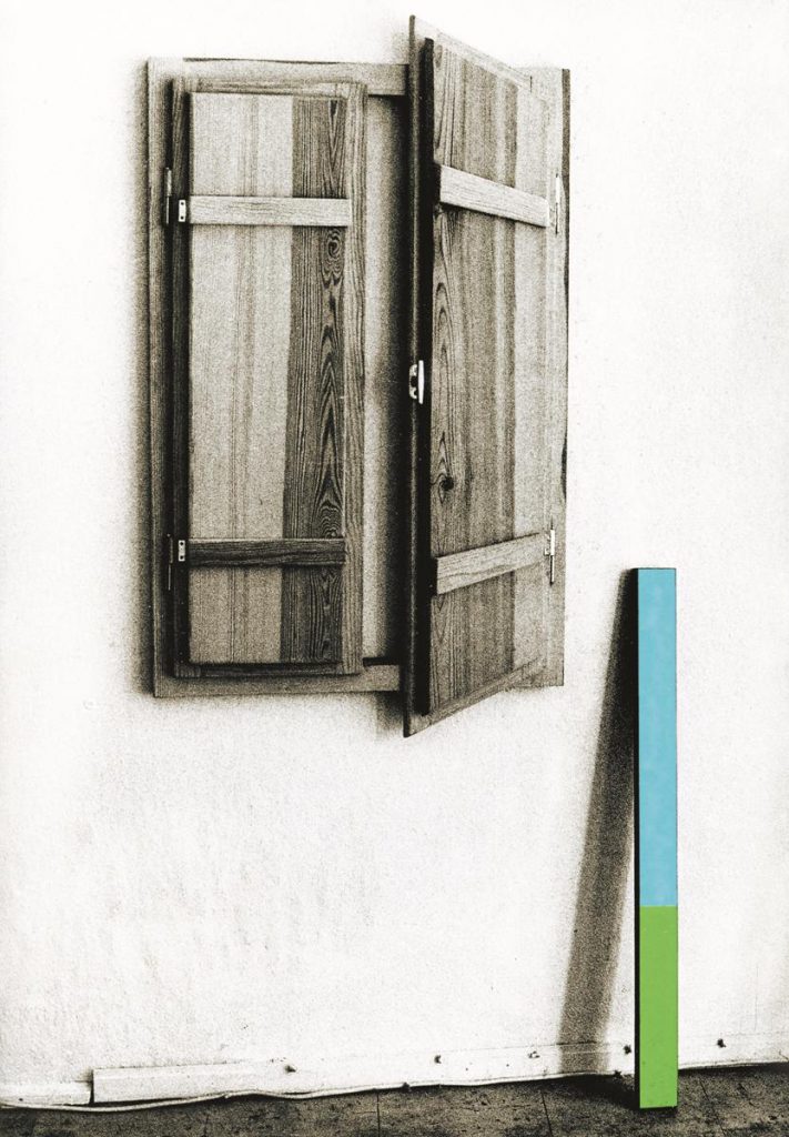 Baumobjekt „o.T.“, Fichtenstamm, 3-teilig, 314 x 280 x 120 cm, Eisenwinkel und Eisenplatte, auf dem Boden Rinde und abgesägte Äste, bei 2 Teilen des Stammes Äste entfernt, der stehende Teil entrindet und geschält, der mittlere Teil nur entrindet, der obere Teil (auf dem Kopf) mit Rinde und Ästen belassen, 1978, entstanden in der Firma Pfleiderer